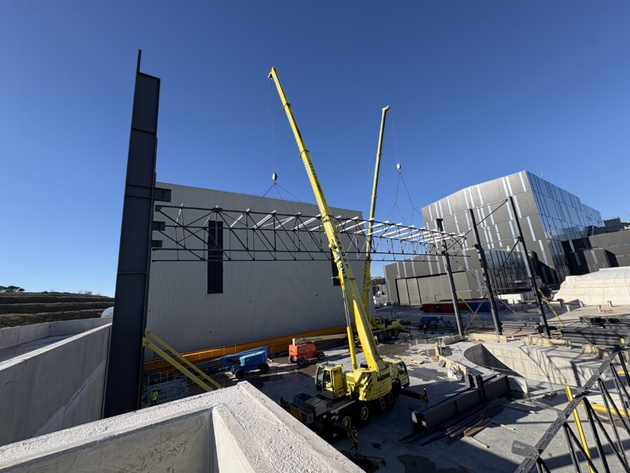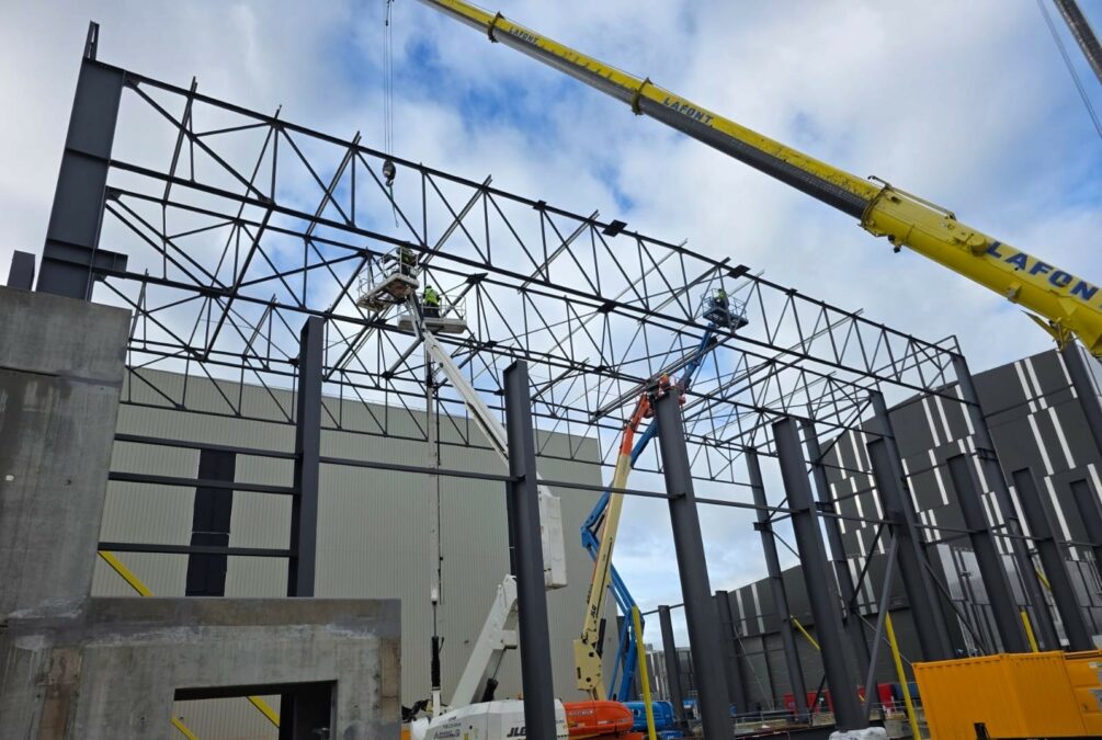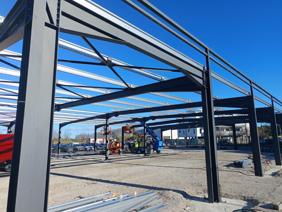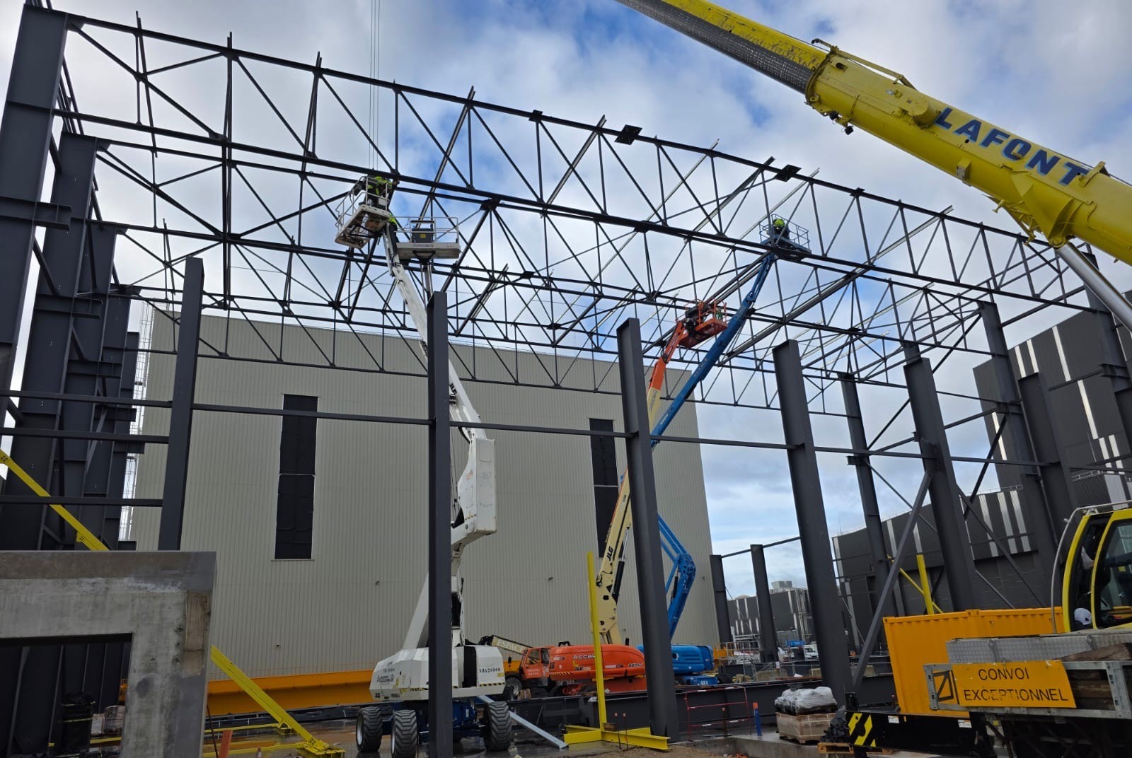 Montage de la charpente pour Castel&fromaget d'un poids de 300 tonnes et d'une hauteur de 15 mètres.