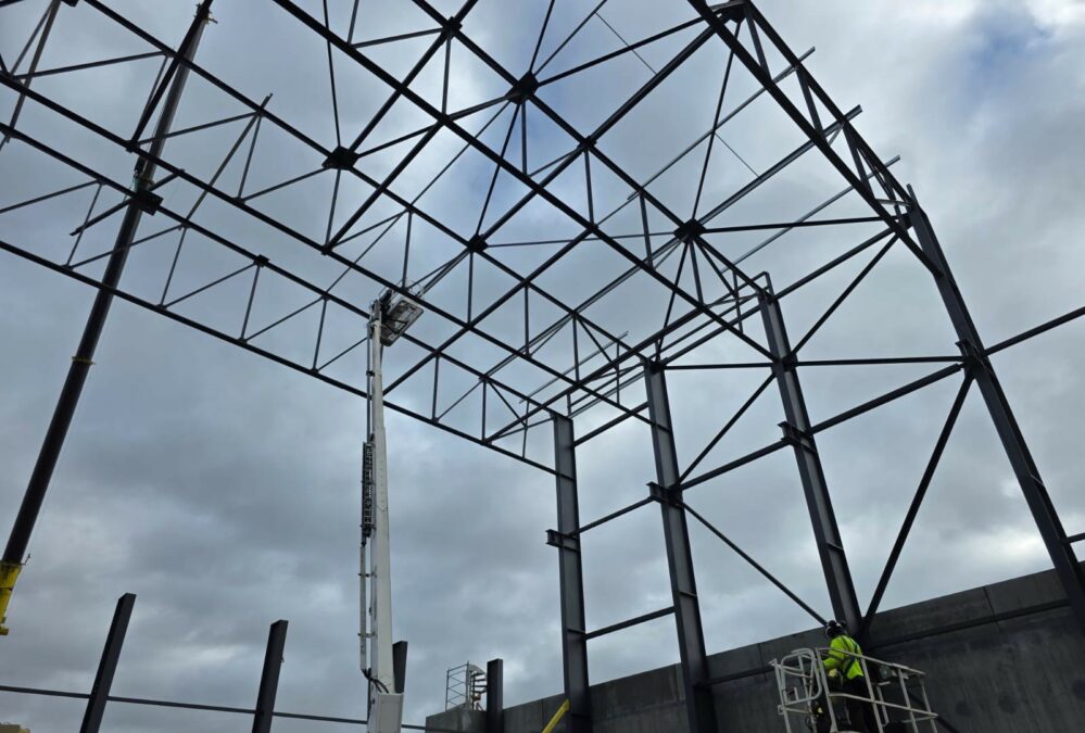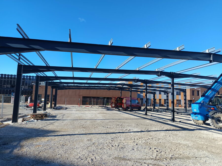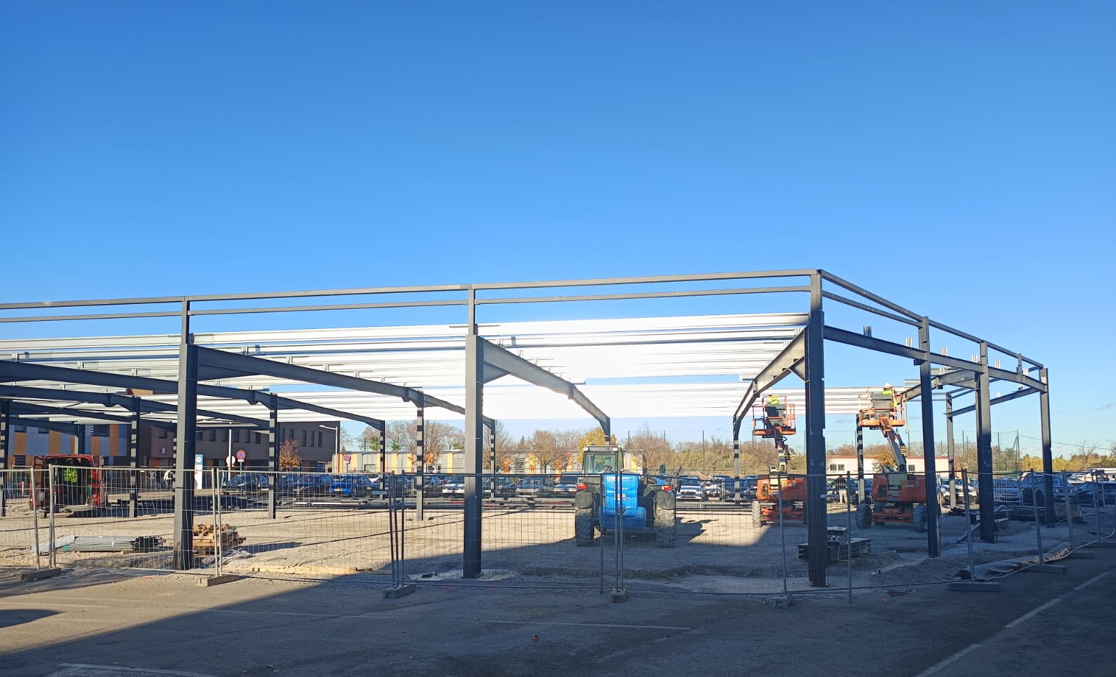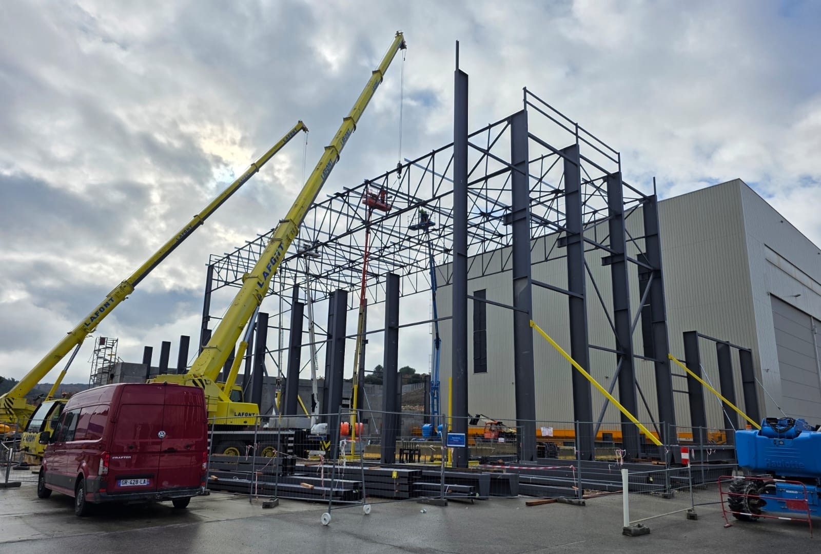 Montage de la charpente pour Castel&fromaget d'un poids de 300 tonnes et d'une hauteur de 15 mètres.